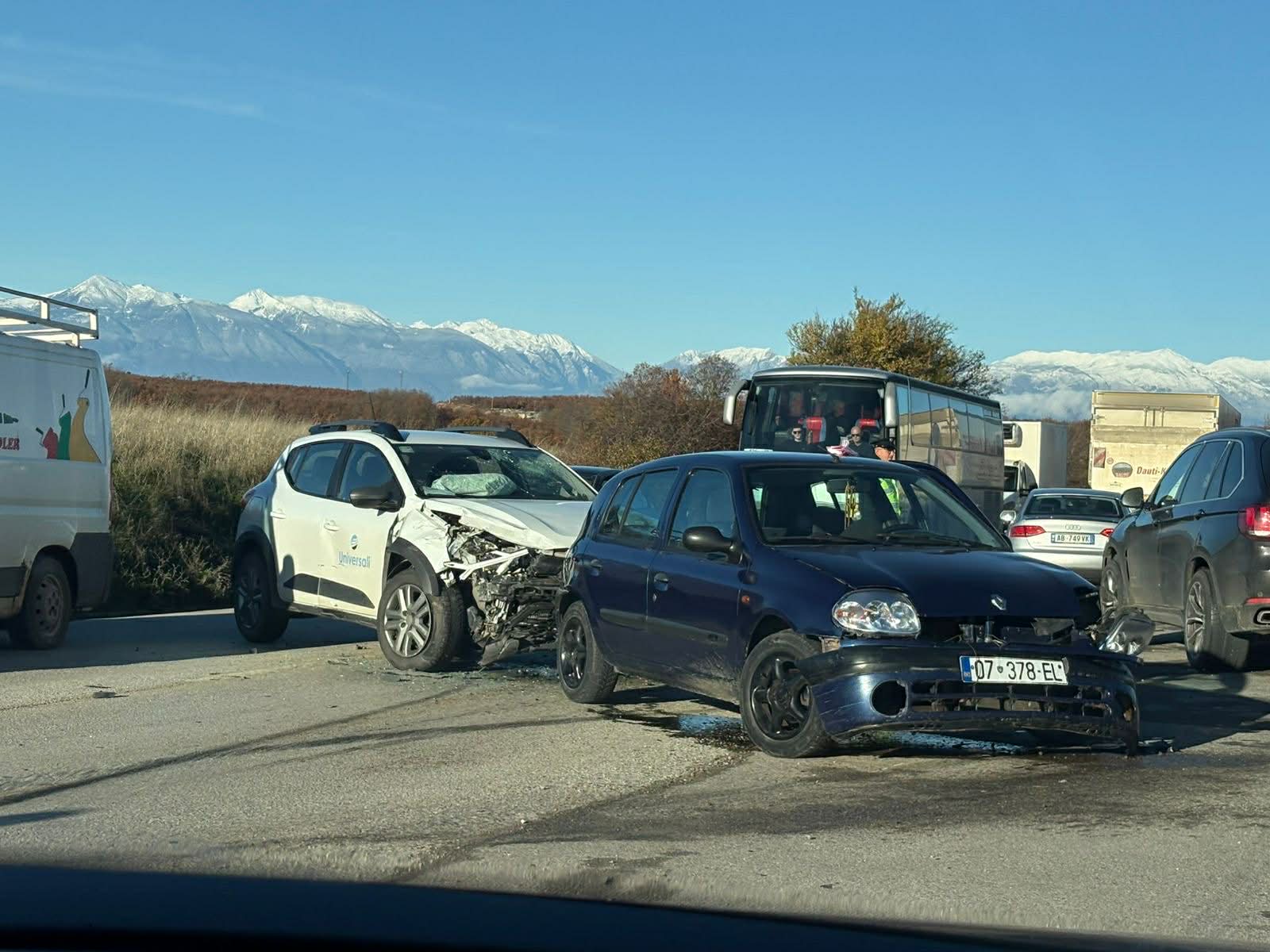 Në fotografi shihet se në aksident janë përfshirë dy automjete të cilave u është shkaktuar dëmtim i konsiderueshëm material, ndërsa prania e policisë në vendngjarje sugjeron se po bëhet menaxhimi i situatës dhe rregullimi i qarkullimit. Si pasojë e përplasjes është krijuar kolonë e gjatë automjetesh në të dyja kahjet.