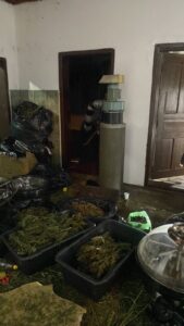 Në vendngjarje është gjetur një sasi e konsiderueshme e substancave narkotike, si dhe pajisje të përshtatura për tharjen e bimëve narkotike.