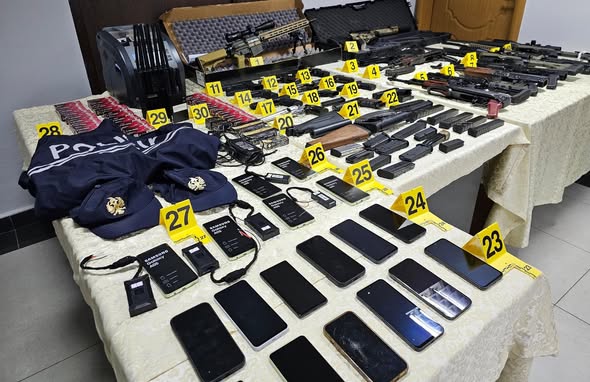 Tiranë, 30 tetor 2025 – Policia e Shtetit ka zbuluar një arsenal të madh armësh në një furgon të kamufluar si mjet për mirëmbajtjen e rrugëve, me logon e kompanisë “Gener 2”. Mjeti ishte parkuar në rrugën “Myslym Shyri” në kryeqytet, ndërsa brenda tij u gjetën 23 armë zjarri, mes tyre 5 snajperë.