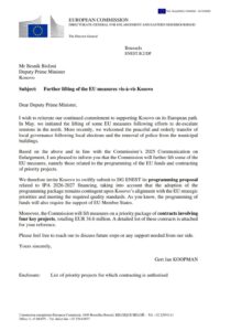 Zëvendëskryeministri i Kosovës, Besnik Bislimi, ka bërë të ditur se ka pranuar një letër nga Drejtori i Përgjithshëm për Zgjerim në Bashkimin Evropian, Gert Jan Koopman, përmes së cilës konfirmohet se Komisioni Evropian ka vendosur të heqë shumicën e masave ndaj Kosovës.