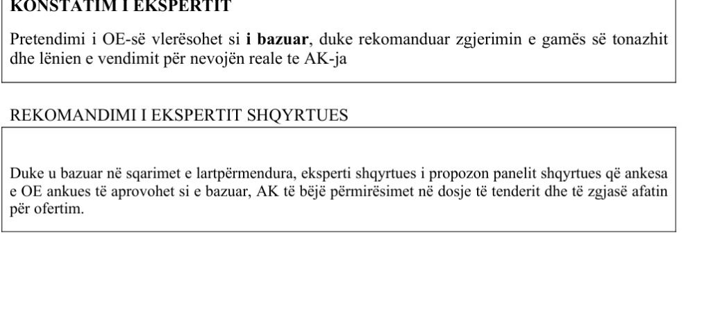 Gjetjet dalin nga Raporti i Ekspertit Shqyrtues Bekim Lushaku, i hartuar pas ankesës së një operatori ekonomik, i cili kishte kundërshtuar kriteret e vendosura nga autoriteti kontraktues, duke i cilësuar ato si joproporcionale, të panevojshme dhe kufizuese për konkurrencën.