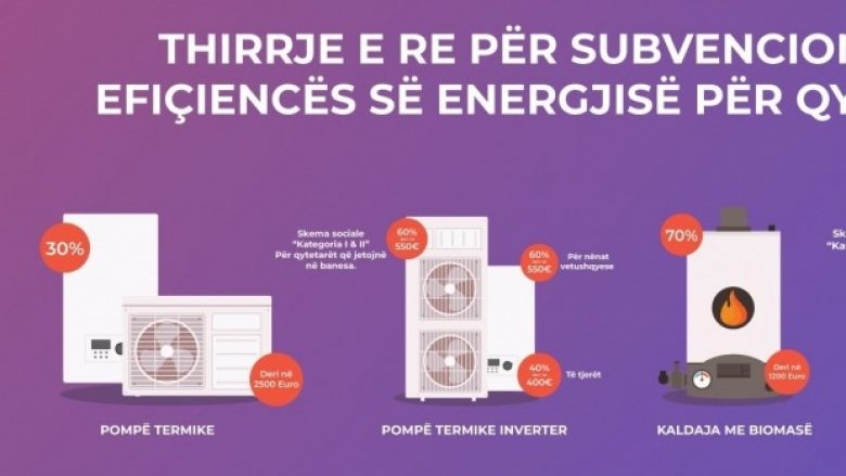 Për përfituesit e skemës sociale, ME do të transferojë mjetet financiare të subvencionit para blerjes apo instalimit së Stufës individuale me biomasë ose Pompës termike ajër-ajër inverter (kondicioner/ klimë efiçiente).