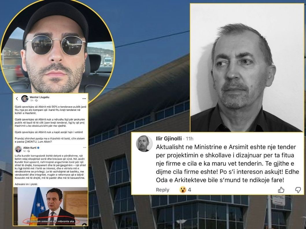 Sipas Gjinollit, “Aktualisht në Ministrinë e Arsimit po zhvillohet një tender për projektimin e shkollave i dizajnuar për të fituar një kompani të caktuar. Të gjithë e dinë se cila është, por askujt nuk i intereson. Edhe Oda e Arkitektëve nuk ka mundësi të ndikojë.”