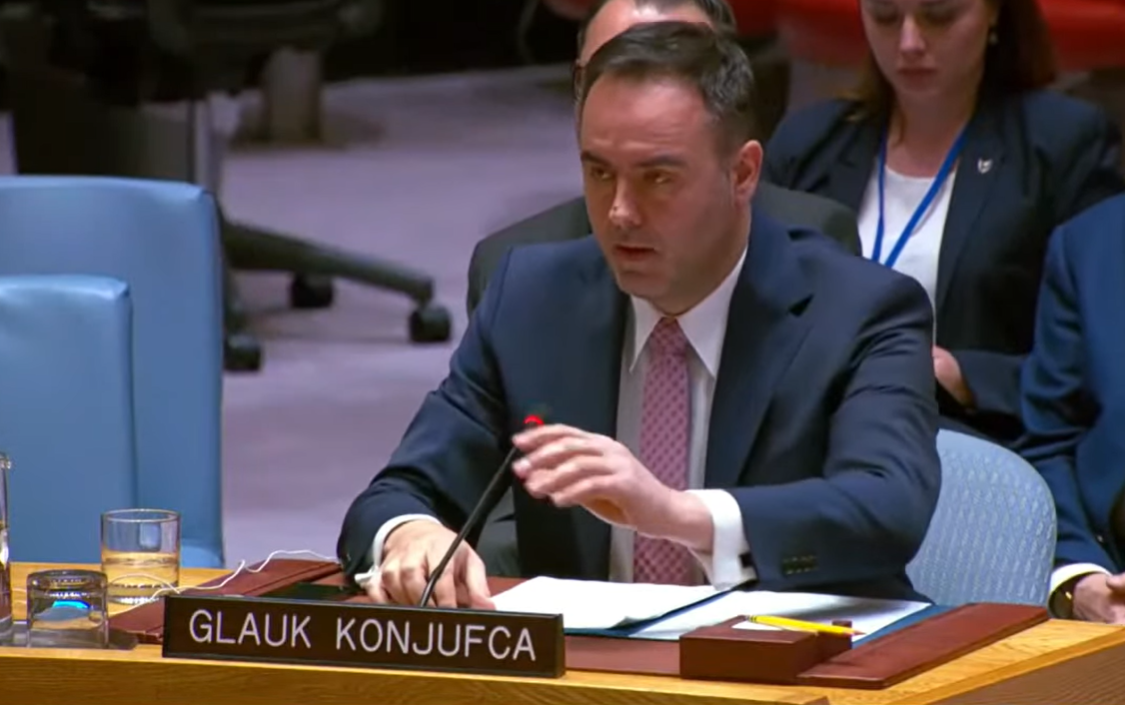 Kryetari i Kuvendit të Kosovës, Glauk Konjufca, në adresimin e tij në Këshilli i Sigurimit i OKB-së, i ka bërë thirrje Serbisë që të përballet me realitetin dhe të njohë pavarësinë e Kosovës, duke mos penguar më integrimin e rajonit në strukturat euroatlantike.