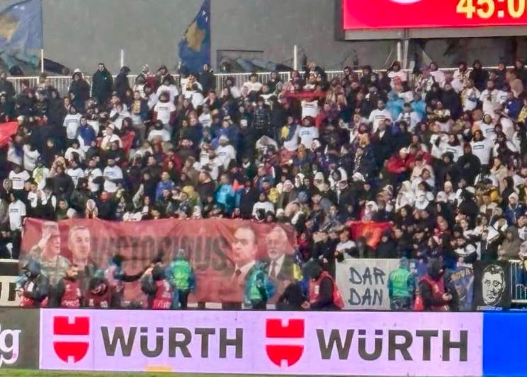 Ky baner qëndroi i hapur gjatë gjatë ndeshjes dhe u shoqërua me brohoritje nga tifozët, duke krijuar një moment emocional dhe simbolik në tribuna.