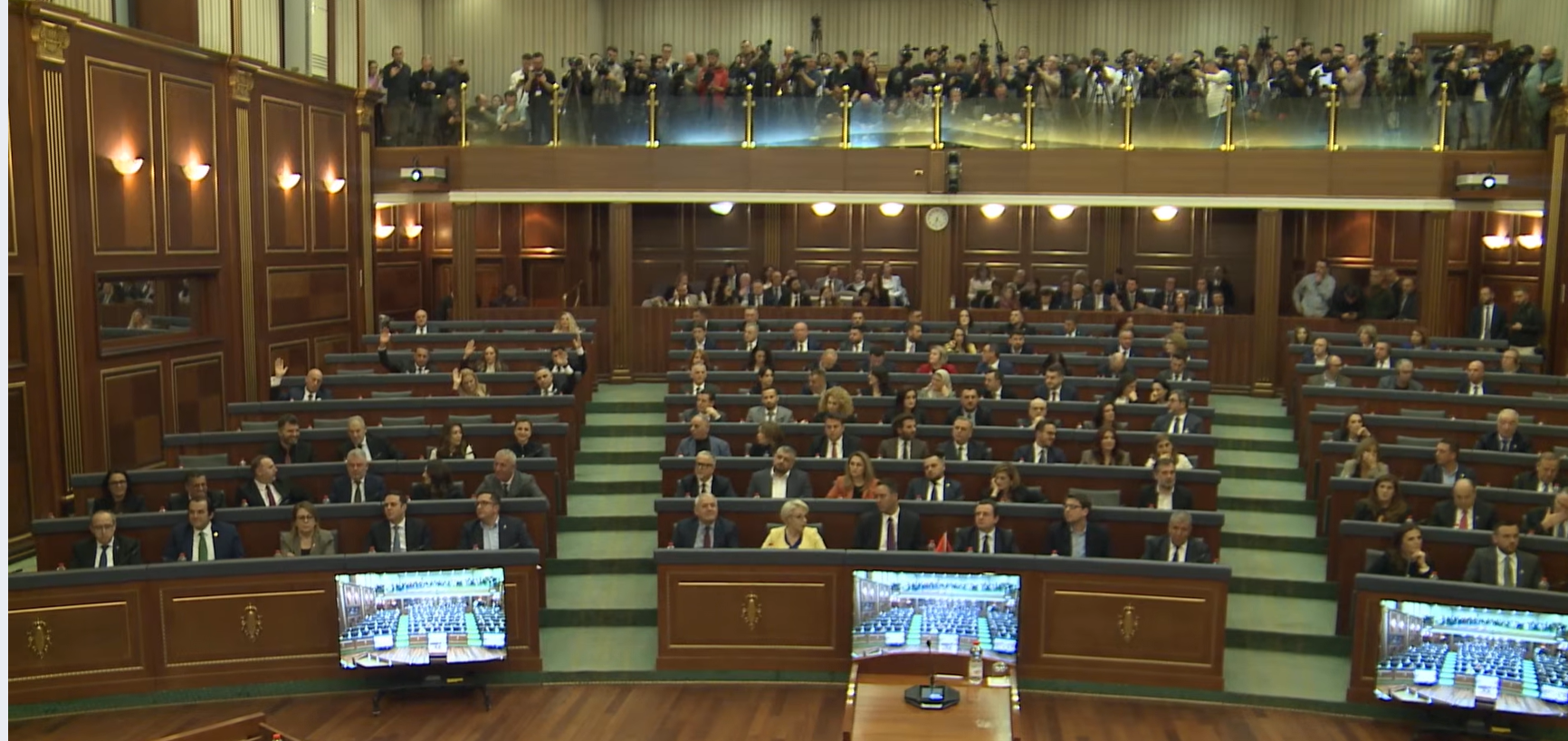 “Sot pritet të mbahet dhe një seancë tjetër, për zgjedhjen e qeverisë. Ju lutem të qëndroni në ambientet e Kuvendit të Kosovës”, deklaroi Haxhiu në përmbyllje të seancës.