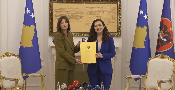 Pas përfundimit të mandatit pesëvjeçar, presidentja e Kosovës, Vjosa Osmani, është larguar nga detyra, duke ia dorëzuar zyrtarisht funksionin kryetares së Kuvendit, Albulena Haxhiu.