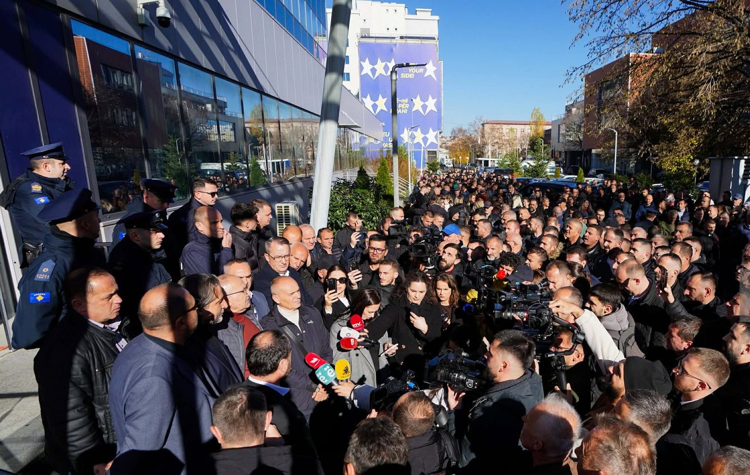 Kryetari i Prishtinës, Përparim Rama, ka dalur para protestuesve tek komuna e Pishtinës.