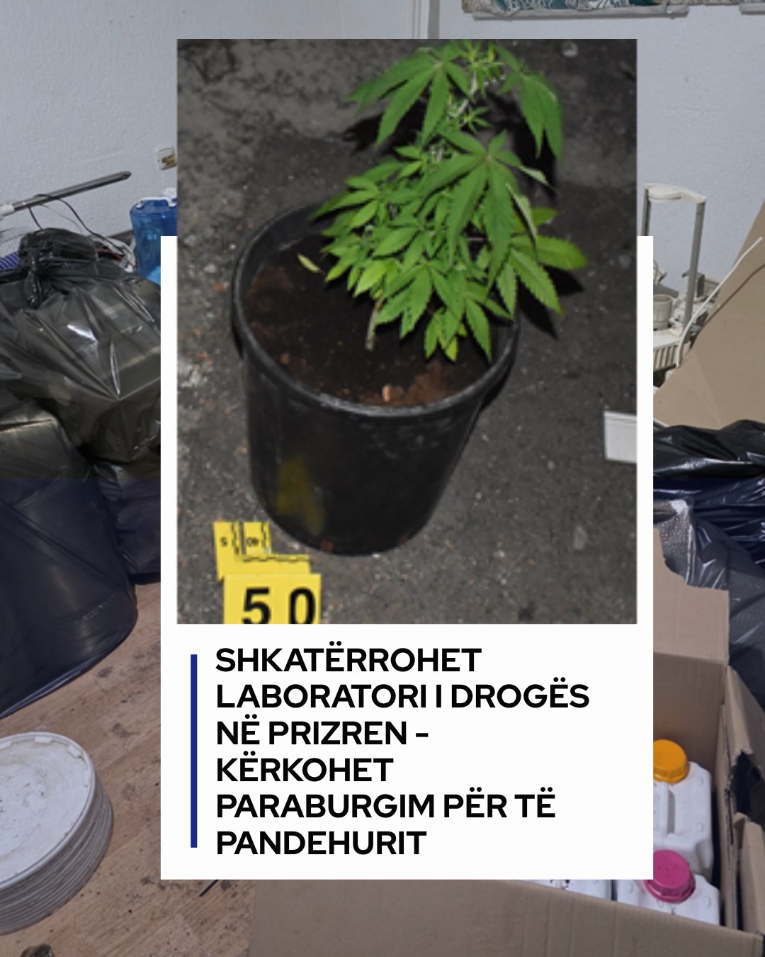 Prokuroria Themelore në Prizren ka njoftuar për zbulimin dhe shkatërrimin e një laboratori të drogës në Prizren, pas një aksioni të përbashkët me Policinë e Kosovës.