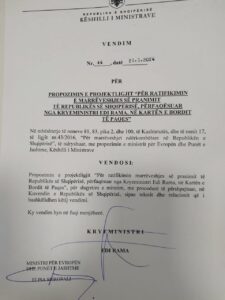 Qeveria sqaroi se autorizimi për përfaqësimin e Shqipërisë ishte marrë një ditë më parë, ndërsa pas miratimit në Kuvend, marrëveshja pritet të dekretohet nga Presidenti Bajram Begaj dhe të hyjë në fuqi pas botimit në Fletoren Zyrtare.