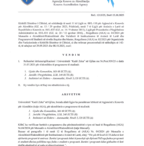 Nga dokumentet zyrtare të siguruara nga qendra.info, del në pah një prej dështimeve më serioze akademike në historinë e Universitetit “Kadri Zeka” në Gjilan, ku Fakulteti Juridik ka mbetur pa akreditim për dy vite radhazi, si pasojë e keqmenaxhimit, kokëfortësisë institucionale dhe shkeljes së qartë të kritereve të Agjencisë së Kosovës për Akreditim (AKA).