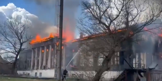 Megjithatë, ajo nuk i shpëtoi valës së fundit të sulmeve ajrore ruse, që goditën rëndë zonën. Flakët përfshinë objektin historik, ndërsa ekipet e zjarrfikësve luftuan për orë të tëra për ta vënë situatën nën kontroll. Dëmet janë të mëdha dhe ende po vlerësohen nga autoritetet.