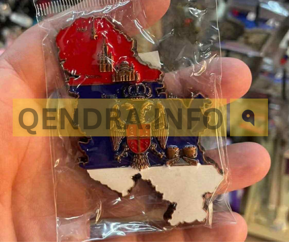 Fotografia e siguruar nga Qendra.info tregon një magnet në formë harte të Serbisë, pa Kosovën, duke u paraqitur si një territor i ndarë.