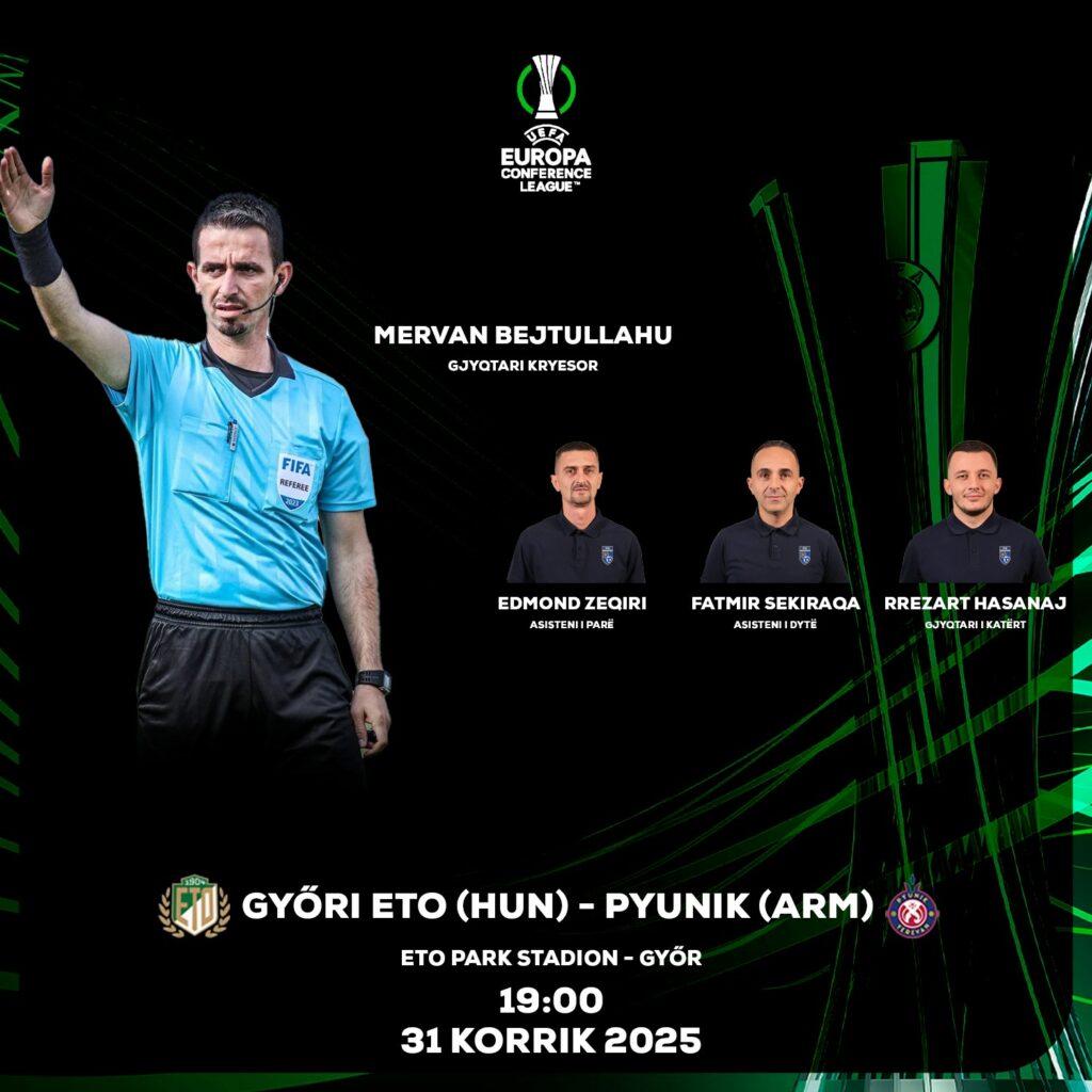 Nuza, do të gjykojë në ndeshjen midis Zilinas dhe Rakoëit, ndërsa Bejtullahu në ndeshjen Gyori Eto-Pyunik.